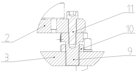 9—内外螺纹螺栓(特制)10—锁紧螺母11—内六角圆柱头螺钉图4II-转台紧固以及高度调整结构示意图