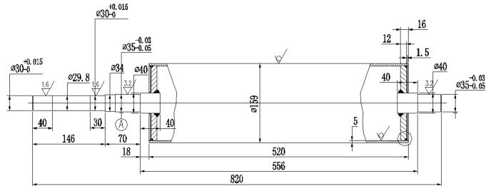 根据皮带尺寸设计匀料主辊尺寸:辊筒直径 150mm ;长度 520mm ,耙