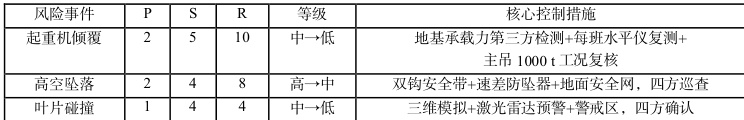 1.四方协同机制:吊装令由业主签发;关键节点(塔筒首节、机舱、叶片对接)实行“四方联签”缺一方不 得起吊。