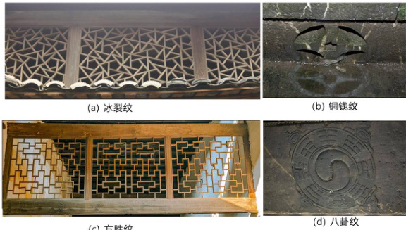 梅山建筑装饰构件体现出系统的符号表意体系和丰富的文化内涵。研究表明,其装饰纹样的表意途径主要包含形象、音韵、吉数、象征和寓意等多维度符号系统。具体而言,祥禽瑞兽纹样、植物纹样、几何纹样、文字纹样和器物纹样等传统装饰元素,主要通过象征、形态、音韵和吉数等表意方式构建其文化意涵;而以民间故事、山水风景为主题的叙事性装饰,则多采用寓意手法进行艺术表达。这种多层次的装饰符号系统不仅丰富了建筑的视觉语境,更成为传递地域文化与民族精神的重要载体。