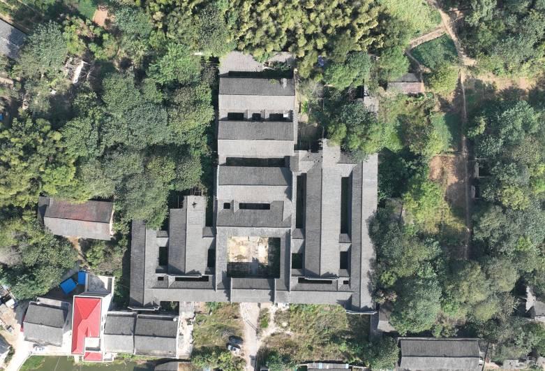 梅山传统建筑装饰的空间构成体现出严谨的形式规范与深刻的文化内涵。其空间布局主要遵循两个基本范式:其一是基于中轴线的对称布局体系。建筑单体及装饰要素以中轴线为参照进行对称化布置,这种空间组织模式不仅体现了中国传统营造思想中"中庸之道"的哲学理念,更创造出庄重稳定的建筑气质,形成了清晰的视觉层次与秩序感。其二是基于等级制度的空间序列。通过将堂屋、祭祀空间等核心功能置于中轴线前端或中心位置,次要空间则布置于两侧或后部,构建出具有明确等级性的空间体系。这种空间布局范式既反映了梅山地区特有的家族伦理观念,又创造了层次分明的空间序列。(见图2)
