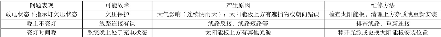 表1 太阳能灯常见故障及其原因与维修方法