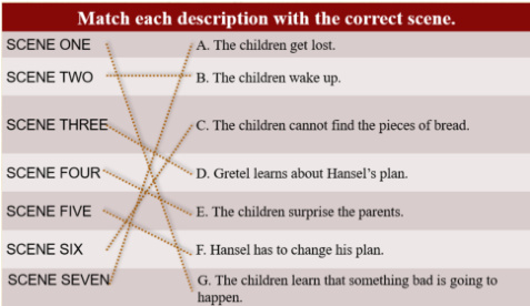 让学生对 Hansel and Gretel 的文本体裁类型做选择判断,并顺势介绍剧本三要素及主要功能。[设计意图]