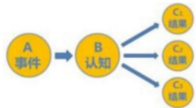 笔者从学生问卷情况和访谈情况出发,查阅并借鉴了由美国心理学家埃利斯创建的情绪 ABC 理论。如右图所示,A 表示诱发性事件,B 表示个体针对此诱发性事件的认知,C 表示因此产生的结果。笔者通过改变学生的行为、情绪等方式改变学生认知。