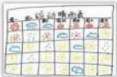 【案例 4】学生制定了运动晴雨表,用太阳、云朵和雨珠分别表示完成、部分完成和未完成运动计划。他们通过这种方式互相展示进度、监督和鼓励。