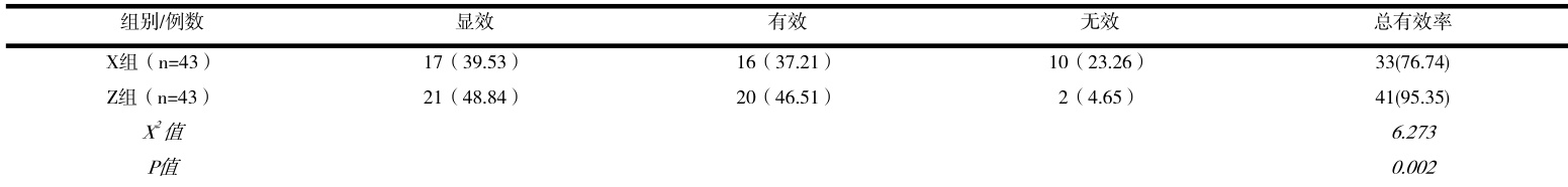 Z组临床疗效高于X组( P<0.05) 。见表1: