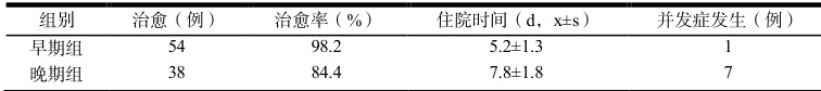 表 3 不同发病时期患者的疗效差异