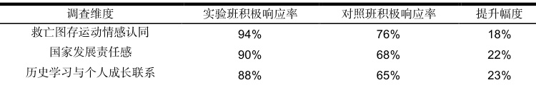 数据显示,家国情怀浸润策略能有效增强学生的情感认同与社会责任感,实现历史教学的育人价值。