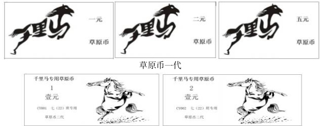 在筹办《千里马快报》的过程中,孩子们学习和活动的兴趣更浓了。他们提议,要开发专用货币,作为班级的奖励用品。因为千里马爱草原,所以货币取名为草原币。我也觉得可以把千里马文化做大做强,故同意他们自行开发,目前孩子们开发了“草原货币一代”和“草原货币二代”(如图)。