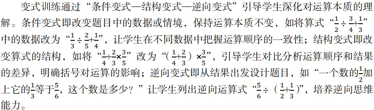 综上所述,通过“情境具象化”夯实算理基础,能让学生理解运算本质;落实“三步核查法”强化习惯养成,能让学生规范运算行为;开展“分层变式训练”提升思维能力,能让学生突破运算瓶颈。这三点相互关联、相辅相成,共同促进学生运算素养的全面发展。