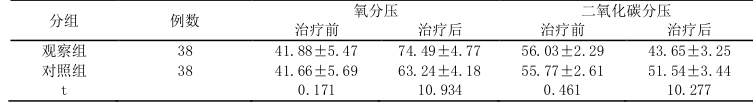 表1 比较两组患者氧分压和二氧化碳分压(mmHg)