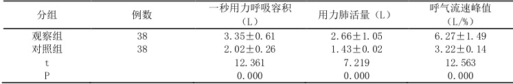 2.2 比较两组患者肺功能指标改善情况