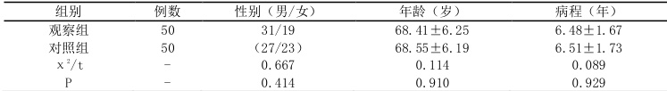 选取地址设置为本医院,选取研究时间范围在2021 年1 月-2023 年12 月,研究选取共计100 例呼吸衰竭患者,遵照双盲法原则性分组处置,即:一组为对照组(落实常规治疗方案,n=50),一组则为观察组(在常规治疗的基础之上实施个体化调整氧疗方案,n=50)。比较组间的一般资料,呈现数据无统计学意义(P>0.05)。见表1。研究取得患者或者其家属的知情同意,且签署同意书;纳入研究内容均取得医学伦理审批。