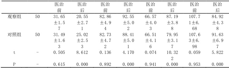 比较组间患者的血气指标变化,显示在治疗之前,两组分之间的呼吸频率、血氧饱和度、氧分压、心率显示无意义(P>0.05),落实疗法之后,观察组的血氧饱和度、氧分压测量值均高于对照组,其呼吸频率、心率显示低于对照组 (P⟨0.05) )。见表3。