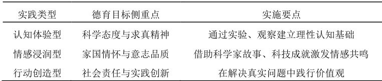 首先,学科本质与内容的天然契合性。物理学本身是人类追求真理、探索未知、不断质疑和创新的典范,研究方法比如观察、实验、假设,核心思想例如守恒定律等都天然蕴含着求真务实、批判思维、理性精神、创新意识、尊重证据的德育要素,这些都是德育目标的重要组成。物理知识与技术深刻影响着社会发展,教学内容涉及科技伦理、社会责任、家国情怀等内容,为引导学生深入思考提供了切入点 。其次,教学过程和方法的承载性。物理实验要求精准、记录要真实、分析要客观,是培养学生实事求是、严谨细致、诚实守信品质的最佳实践场所。科学探究活动中全程渗透德育思维,从提出问题、设计实验、收集证据、分析论证,各个环节都可以融入德育元素。物理知识探究和问题处理的过程,也是培养学生逻辑思维、批判性思维、克服困难专注力的重要过程。