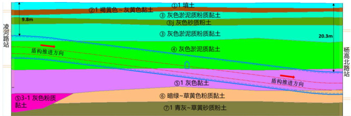 图 7 凌河路站—杨高北路站段盾构区间地质剖面图