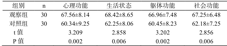 表 1 GQOLI-74 评分( n=30 ,