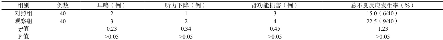 1.3.3 药物不良反应:记录两组患者在治疗过程中出现的不良反应,如耳鸣、听力下降、肾功能损害等。
