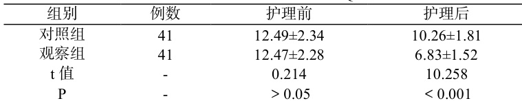 表 1 展示了两组患者在护理前后 PSQI 评分比较
