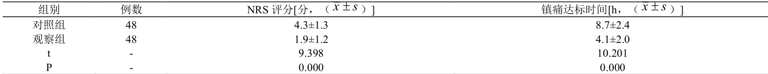 表 1 两组患者的 NRS 评分及镇痛达标时间