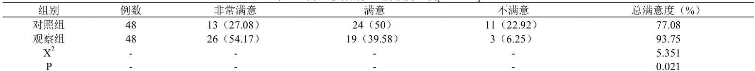 1.4.3 护理满意度。根据病历中患者或家属填写护理满意度调查表,分为非常满意、满意、不满意三个等级,计算总满意度,即(非常满意例数 + 满意例数)/总例数 ×100% 。
