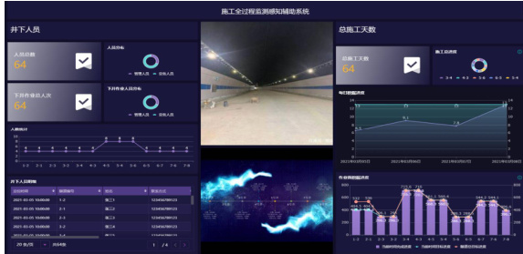 云管理平台模块作为系统核心枢纽,部署于监控中心服务器,整合全隧道各类监测数据实现集中管理。平台通过三维可视化界面展示项目全貌、人员动态、进度趋势等关键信息,支持通过 LED 大屏、移动终端等多渠道呈现数据。平台核心功能包括信息整合展示、智能风险分析与移动协同管理:可自动关联多源数据,当检测到电缆异常时回溯历史施工记录辅助诊断,为运维决策提供全面数据支撑。