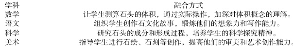 石滩镇中心小学将石文化课程与多学科进行深度融合,为学生提供了丰富的学习体验。以下是一些学科融合的案例: