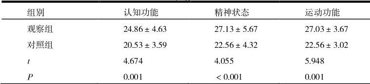 本研究需对比两组患者的术后恢复情况(分别采用蒙特利尔认知评估量表、简易精神状态检查量表、FMA 运动功能评估量表,对患者的认知功能、精神状态、运动功能进行评估,分数越高则表明各项功能、状态越好)、护理满意度(包括非常满意、一般满意、不满意,满意度=非常满意度 + 一般满意度)。