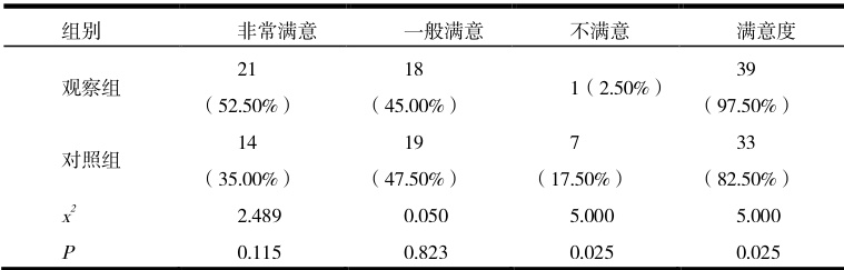 表 2 护理满意度对比( 1=40 ,%)