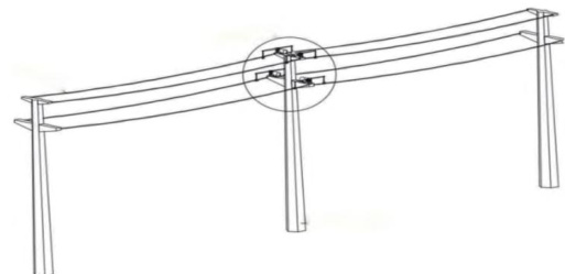 在正式架线前,首先要将放线滑车移至适当位置,并将牵引绳固定于横杆之下。而对于不同类型杆塔,其牵引绳悬挂数量也存在一定差异。若选择直线杆塔,则需在每一根导线上悬挂一根牵引绳。但若选择耐张塔,悬挂牵引绳的数量必须增加,通常悬挂两根牵引绳,同时还需使用挂线架和张力机等设备。输电线路架线施工状态如图 1 所示。