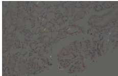 1.病例资料 本项回顾性研究涉及我院血液内科在 2021 年 5 月-2024 年 12 月新确诊的38 例初发淀粉样变性(AL 型)患者。其中男性患者22 例(57.9%),女性患者 16 例(42.1%)。年龄范围 37-85 岁,平均年龄 64Y 基础疾病方面,合并高血压患者 11 例(30.16%),合并糖尿病患者 6 例 (16.67% ),合并肾功能不全患者 13例(35.71%)。纳入标准:符合《AL 型淀粉样变性诊断和治疗指南(2021 年版)》中的确诊标准,即组织活检(脂肪或肾脏)发现刚果红染色阳性淀粉样物质(见图 1 图 2),且免疫组化或质谱分析证实为轻链型。患者及家属签署知情同意书,本研究经医院伦理委员会批准(伦理批号:2021 第 063 号)。骨髓标本所有患者均为治疗前骨髓。