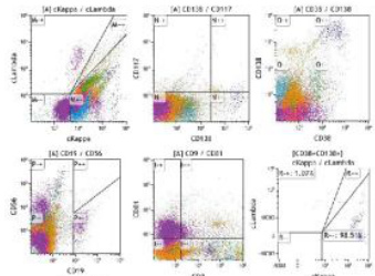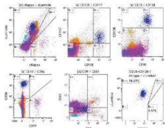 1.本次回顾性研究纳入了初诊淀粉样变性(AL 型)患者共 38 例,其中发现 CD9 阳性 20 例(图 3),CD9阴性 18 例(图 4)。