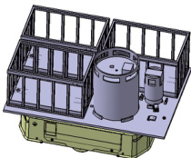 该模块由 AGV 小车和其上搭载的源罐底座组成,如图 2-1 所示,其主要承担放射源在库区与交接区之间的运输任务。AGV 小车采用激光 SLAM 导航技术,可将源罐精准地运输至交接位置,实现出入库过程全部自动化,确保运输过程全封闭。其上可一次性搭载一整套放射源,在保证运输过程安全稳定的同时控制了单次取还源的用时。