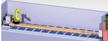 库内采用工业机器人进行放射源的转移,其示意图如图 2-2 所示。该模块抓取机构为六自由度机器臂搭载末端执行机构,抓手通过压力传感器动态调节夹持力,可执行不同类型尺寸的罐体抓取、源坑盖开闭等操作任务。工业机器人底部可安装滑轨,将机器人作业范围扩大至整个源坑区域,实现源罐从源坑到辐射检测台到 AGV 小车的自动化运输。