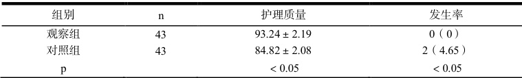 2 结果2.1 观察组患者压力性损伤发生率少于对照组,观察组患者护理质量优于对照组,有统计学意义( P<0.05) 见表 1