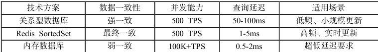(1)排行榜系统设计。一是技术选型对比,研发积分与排行榜实时更新模块,对比关系型数据库、Redis SortedSet、内存数据库在数据一致性、并发能力、查询延迟等方面的参数差异,如表 2 所示,最终选择 Redis SortedSet,基于 Redis 缓存技术存储用户得分数据,设计排行榜 Top10 刷新算法。二是优化界面渲染逻辑,采取双线程设计方式,其中主线程负责游戏逻辑处理、得分更新,后台线程负责 Redis 实时。批量更新,确保排行榜显示无卡顿。