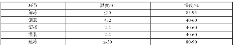 环境对食品加工过程中的营养保留影响显著,涉及温度、湿度、光照等多个方面。监控加工环境温湿度、光照,可以避免高温加速化学反应、高湿促进微生物繁殖、低湿加速水分散失、光照引发维生素氧化分解等问题导致的食品营养流失[6]。以调理牛排为例,从原料到成品,整个加工流程需要在低温环境下进行(通常要求环境温度≤ ∴12∘C ),防止微生物繁殖和酶活性增强导致肉质降解和汁液渗出,同时针对不同加工环节合理调整环境参数,确保营养不过度流失,局部见表8。