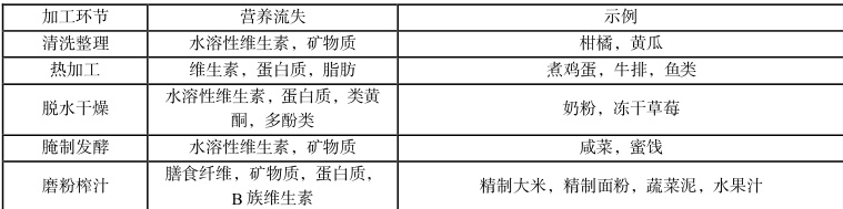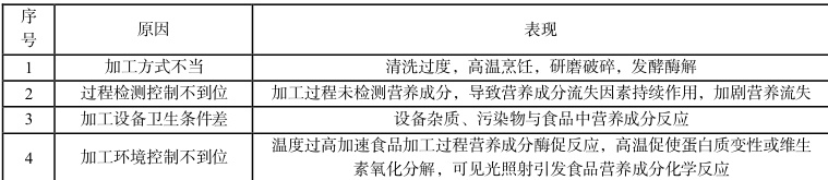 表2 食品加工过程中的营养流失的原因(局部)