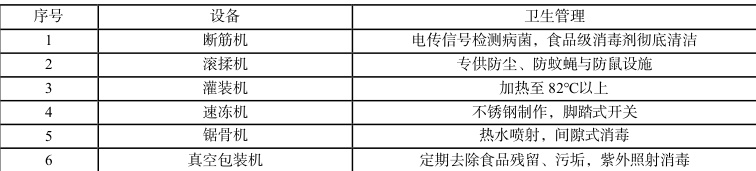 表7 牛排加工设备卫生管理要求(局部)