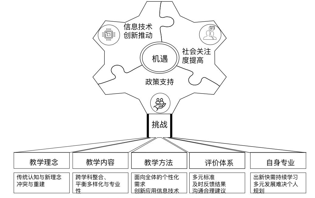 图1 体教融合背景下年轻体育教师面临的挑战与机遇分析示意图