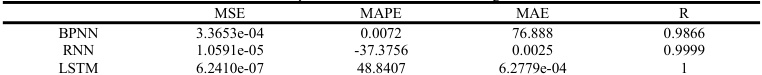 为了验证本方法在板形识别问题中的优越性,进行了对比实验。实验结果如表 3.3 所示,与传统的BP 板形识别模型相比提高3 个数量级,与循环神经网络的板形识别模型相比提高 2 个数量级,证明了LSTM 板形识别模型的有效性。