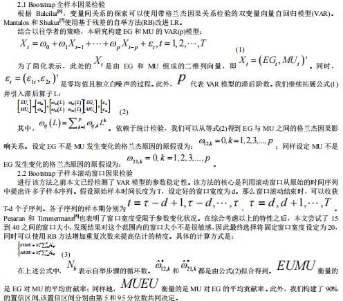 从表3 中可以表明基于VAR 模型的参数存在明显的结构变化情况。因此继续使用bootstrap 子样本滚动窗口因果检验方法来判断EG 和MU 之间的双向因果关系。