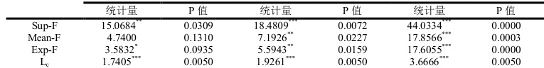 本文对参数稳定性进行检验,在 p 值的计算过程中,我们选取 Bootstrap 循环次数为 10000,具体检验结果如下:
