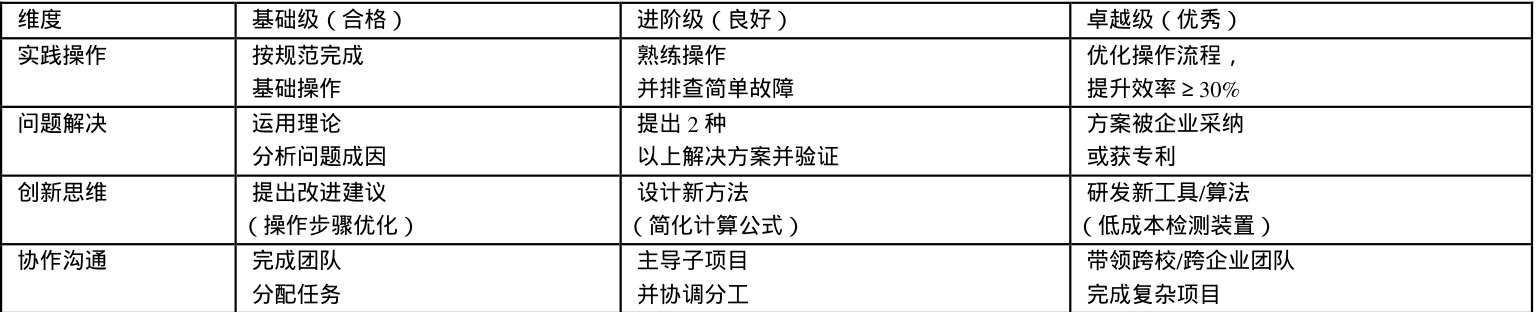 从“ 实践操作、问题解决、创新思维、协作沟通” 四个维度,设置基础、进阶、卓越三个等级的评价标准[5]: