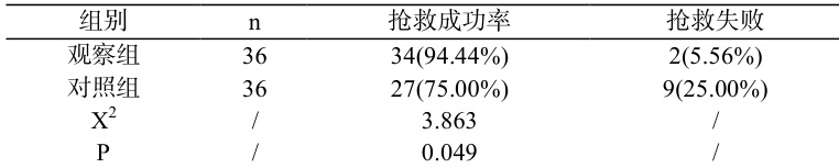 表 2 两组抢救成功率对比