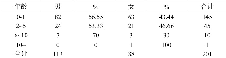 2.1 一般情况 2024 年共接种疫苗 19 种,其中第一类疫苗 9种,第二类疫苗12 种,累计接种 106489 剂次,发生不良反应疫苗 11 种,其实第一类疫苗 8 种,共报告不良反应个案 217 例,总体报告不良反应发生率为188.75/10 万,报告不良反应例数居前的包括乙脑减毒活疫苗,5 联疫苗、麻腮风疫苗,其中男童发生例数为 113 例,女童发生例数为88 例,0-1 岁年龄段发生不良反应最多。不良反应发生率男童高于女童,有统计学差异, P<0.05AA 。结果见表1、表 2、表 3。