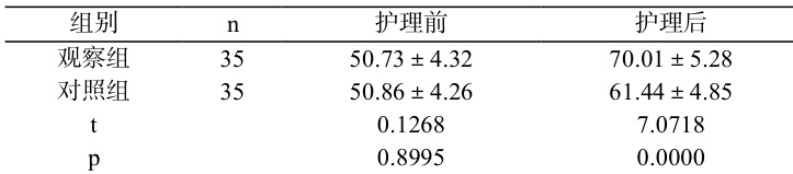 两组护理前的 QLQ-C30 评分无显著差异( p>0.05 ),护理后观察组显著更高( p<0.05 )。见表 2。