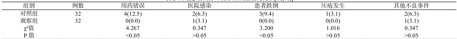 观察组在用药错误、医院感染、患者跌倒、压疮发生等方面的发生率均低于对