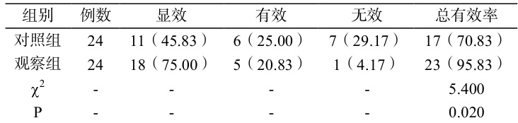 2.1 临床疗效观察组总有效率更高( ρP<0.05 )。见表 1: