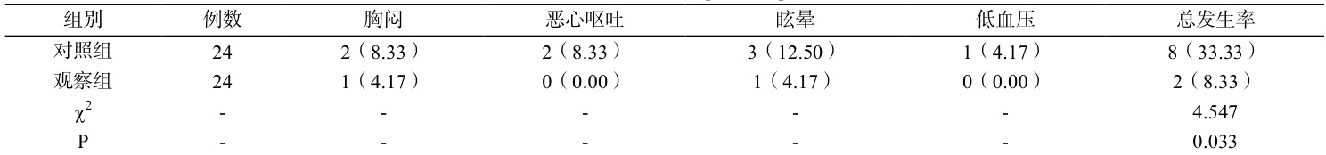 观察组不良反应总发生率更低( P<0.05 )。见表 2: